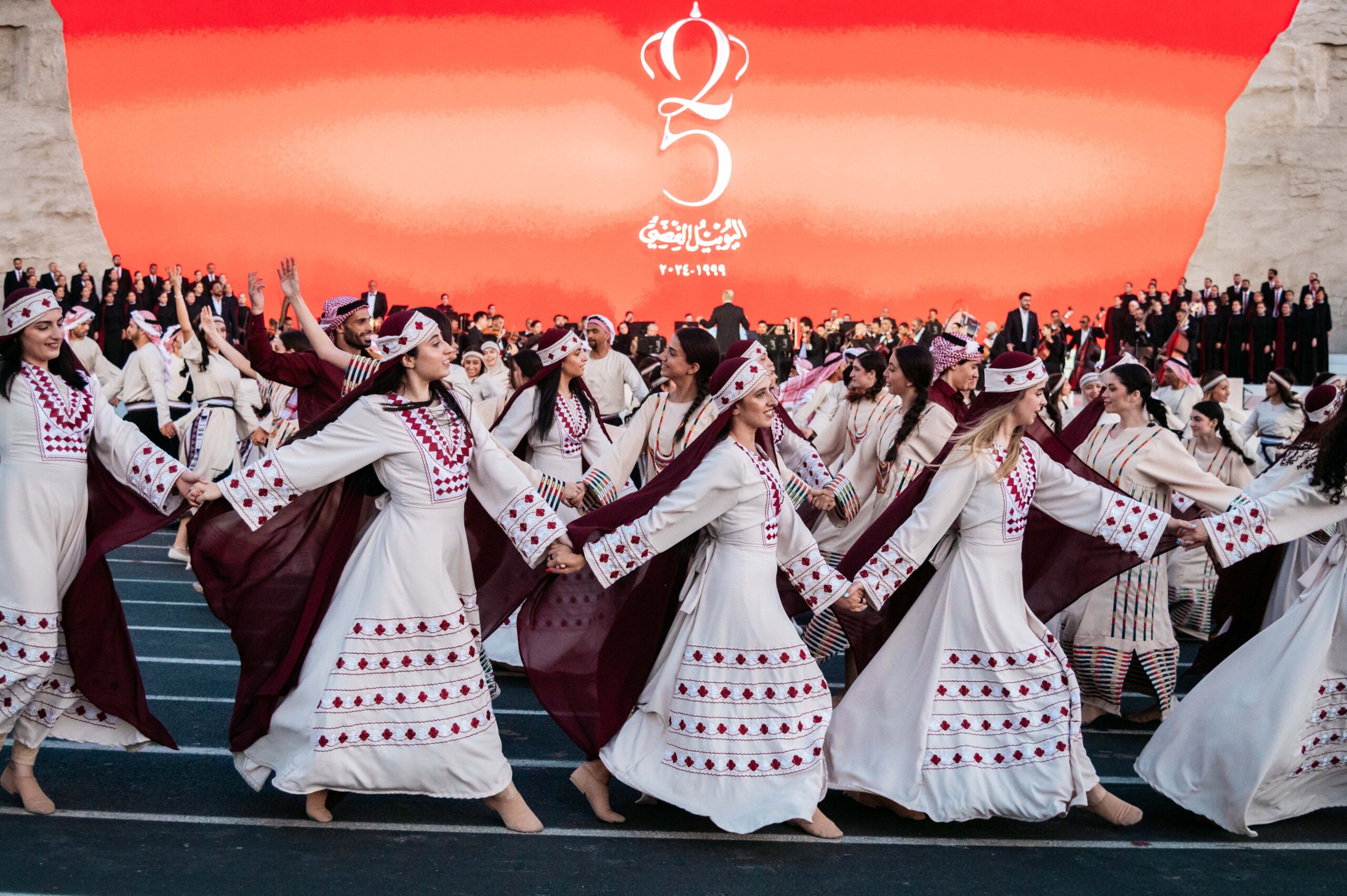 “أنا من هون.. من أرض الكرامة والخير” عمل فني استثنائي يعبر عن الفخر بالروح الأردنية، أداه الفنانان يزن الروسان وسيف الصفدي أمام جلالة الملك والعائلة الهاشمية وحشد كبير من الأسرة الأردنية في الفعالية الوطنية بمناسبة اليوبيل الفضي لتولي جلالة الملك سلطاته الدستورية