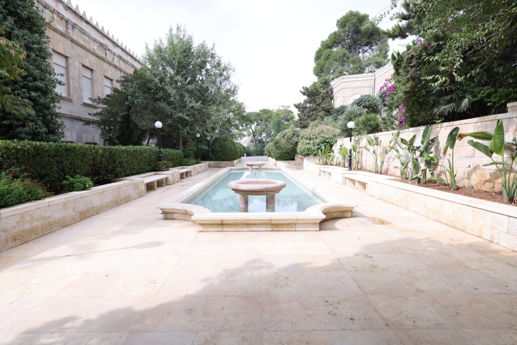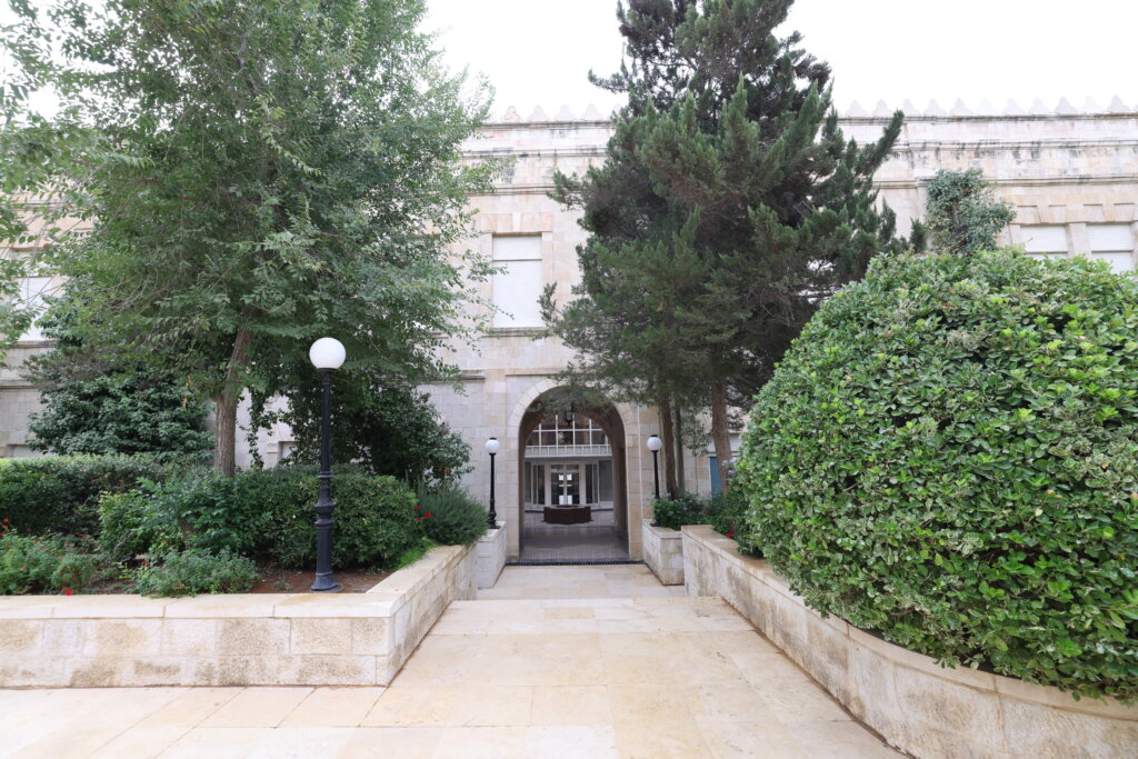 ويطلّ القصر على باحة ذات شكل مستطيل، محاطة بسياج تعلوه أسنّةُ رماح ذهبية، وتجري فيها مراسم استقبال الضيوف واحتفالات عيد الاستقلال واليوبيل الفضّي والذهبي لميلاد الملوك الهاشميين وجلوسهم على العرش.